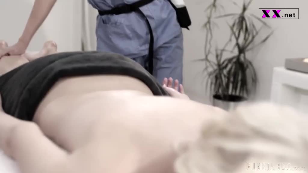 CENE 以身材娇小的 21 岁女子 Tori 为开场,她在候诊室里无所事事地跺着脚。她今天要和她的常规按摩师 Linda 约个时间,Linda 是一位和蔼可亲的老妇人。Tori 多年来一直拜访 Linda,帮助她治疗因运动损伤引起的下背部疼痛。当 Linda 热情地迎接她时,两个女人拥抱在一起,走进按摩室。她们闲聊了几分钟,然后 Linda 让她脱掉衣服,躺在按摩床上。她离开了。Tori 脱下所有衣服,整齐地叠好,然后躺在按摩床上。镜头切换到隔壁房间里的 Linda。她看起来非常焦虑。当她听到 Tori 喊她准备好时,她紧张地瞥了一眼坐在她旁边的男人。那是她的丈夫理查德。她问他是否确定所有东西都锁好了,安全了,他们不可能被抓住。他很生气,厉声对她说别再担心了——她总是这么胆小。此外,她答应了。所以,只要他们按照他说的做,一切都会好起来的。琳达用力吞咽了一口,脸上露出矛盾的表情,然后他们起身离开了。 镜头切换到标题板 当琳达走进房间时,托里正趴在按摩床上。她开始按摩,声音微微颤抖,告诉托里,今天她打算用她的技术做一些不同的事情。她称之为“四手治疗”,并征求托里的同意开始。托里天真地问会发生什么,琳达告诉她,她只是加了一些东西来增加压力,刺激她的肌肉,特别是在身体最紧张的下半部分。托里高兴地同意了,琳达一脸愧疚地让她闭上眼睛放松,同时悄悄地把理查德叫进了房间。